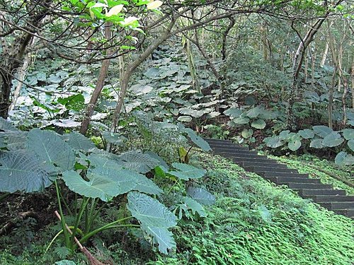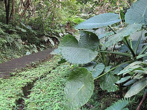沿著步道兩旁,長滿了巨大姑婆芋!